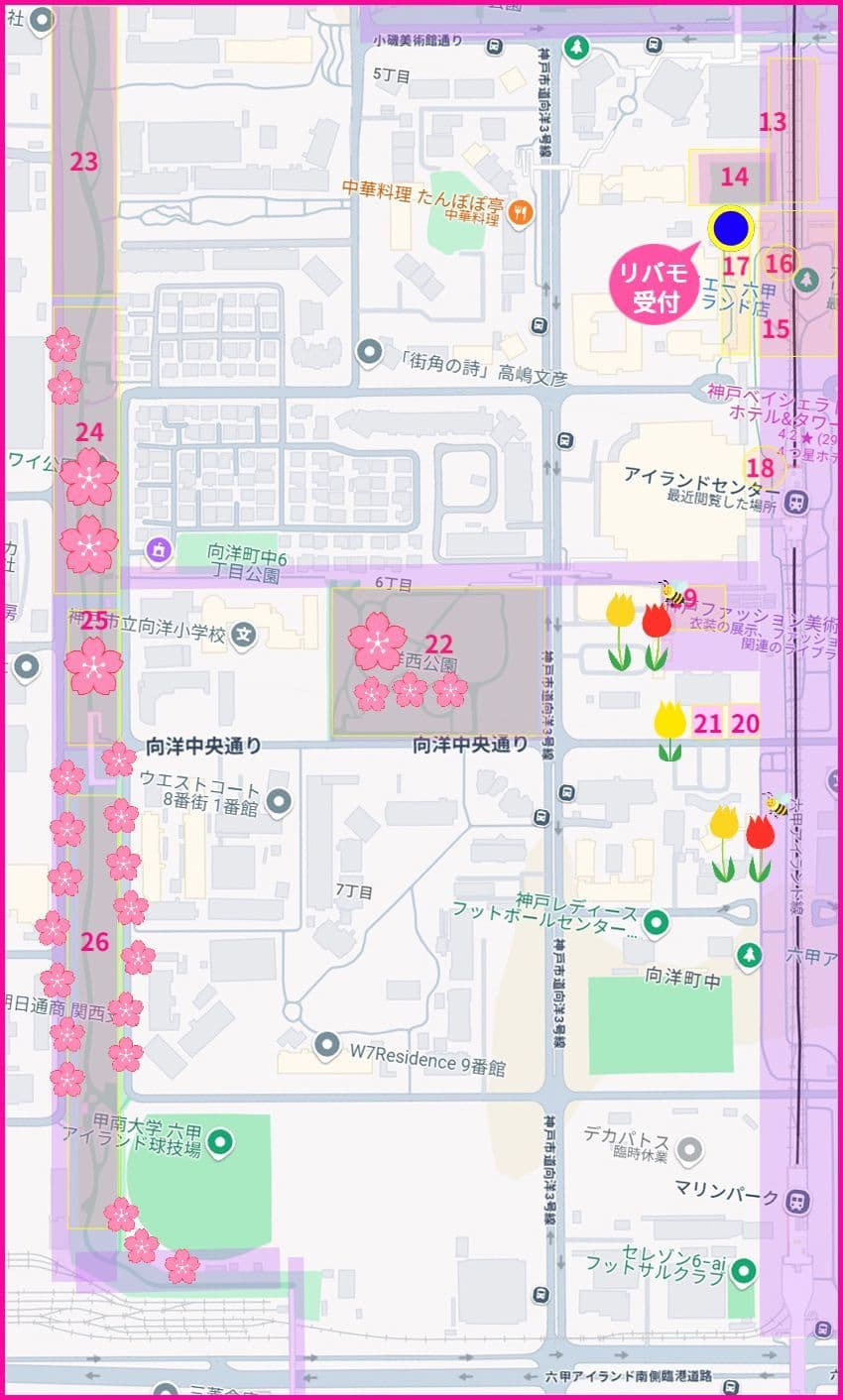 季節の花がみられるエリアは、より特徴が分かりやすいように春バージョンのエリア名に変えてみました。