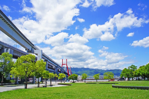 橋上からビル街を背景に都会的な雰囲気