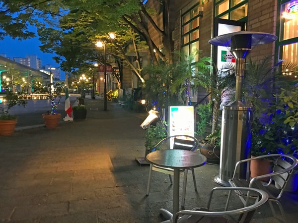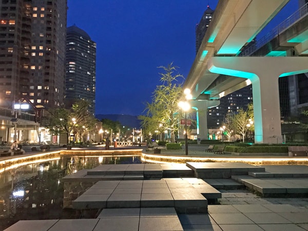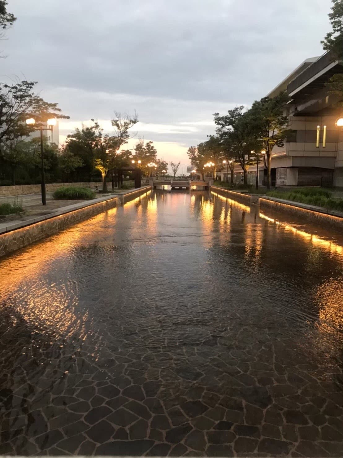 リバーモールは日没前から街全体のライトアップが始まります。
